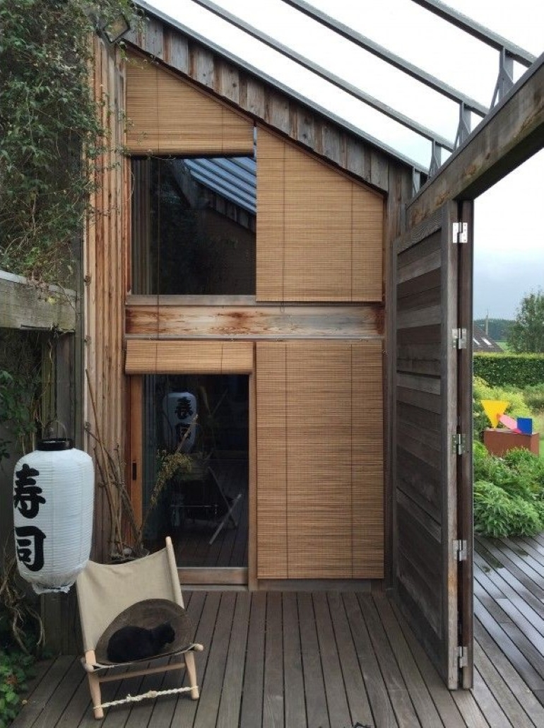 - Persianas triangulares de madera: les confiere una sensación artesanal y tradicional, integrándose con estilos de vivienda que valoran esos materiales más naturales.